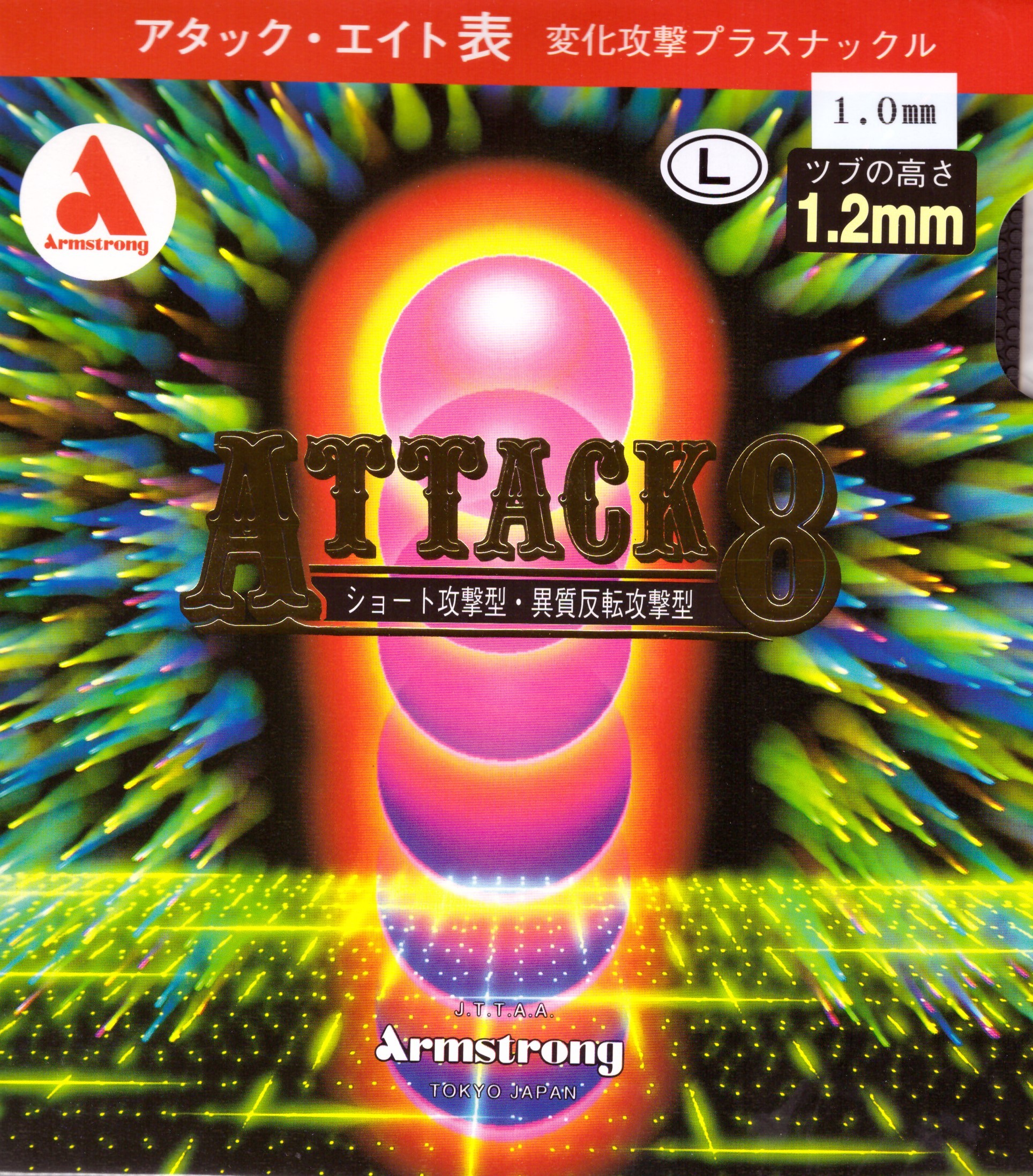 A Armstrong Attack 8 L é uma borracha de pinos curtos diferenciada, conhecida por seu efeito knuckle – uma característica que altera a trajetória da bola de forma imprevisível, dificultando a leitura do adversário. Com pinos de 1.2mm de altura, superiores ao padrão de 1.0mm das borrachas tradicionais de pino curto, essa borracha oferece bloqueios disruptivos, golpes diretos e variação estratégica no jogo.