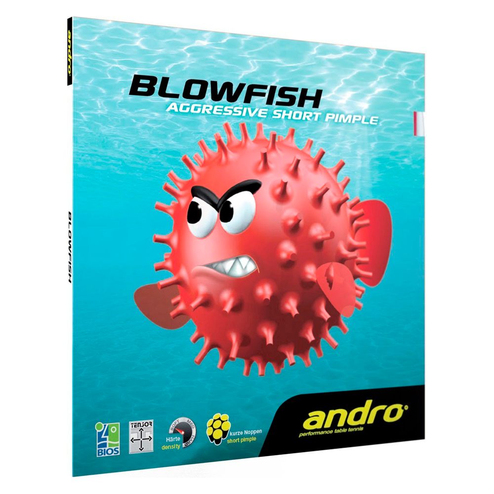 A Andro Blowfish, inspirada no peixe baiacu, é uma borracha de pinos curtos projetada para jogadores ofensivos que desejam combinar velocidade, controle e versatilidade em um só equipamento. Com sua esponja macia e tecnologias modernas, a Blowfish se destaca pela potência e precisão nos ataques, sendo perfeita para jogadas próximas à mesa e estilos agressivos.