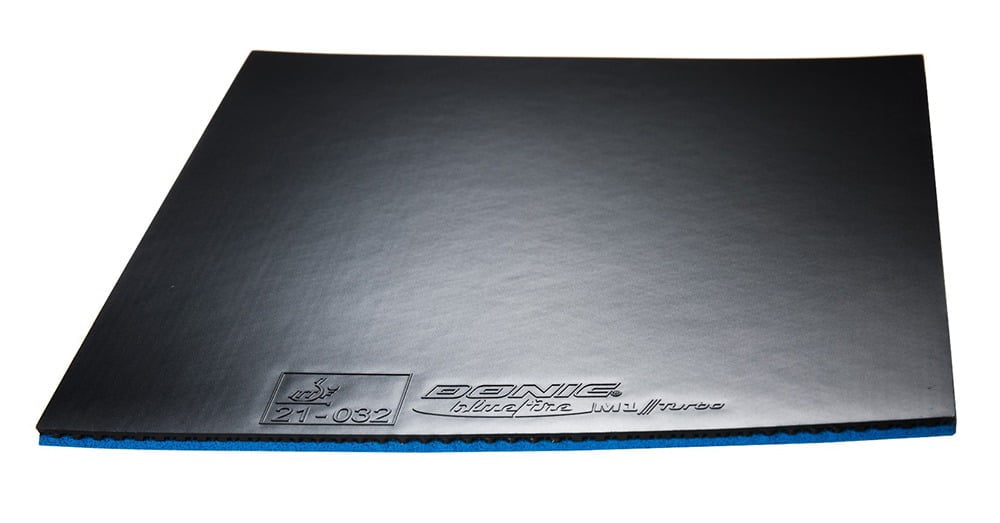 A Bluefire M1 Turbo apresenta a icônica esponja azul tensionada combinada com um topsheet extremamente aderente. Esta combinação inovadora resulta em uma geração de borrachas de alta tecnologia. A estrutura do topsheet, com pinos longos e estreitos, oferece máxima flexibilidade e uma sensação sensacional durante o jogo.