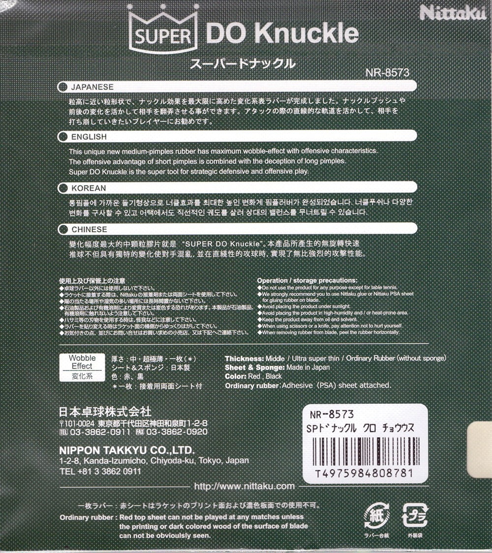 A Borracha Nittaku Super DO Knuckle é uma arma poderosa para jogadores experientes que buscam efeitos oscilantes devastadores combinados com ataques ofensivos implacáveis. Inspirada no estilo de jogo dominante de jogadores como Jun Mizutani, essa borracha oferece uma combinação única de controle preciso e potência explosiva para dominar seus oponentes.