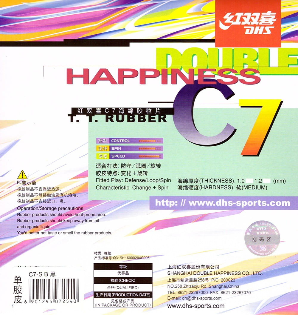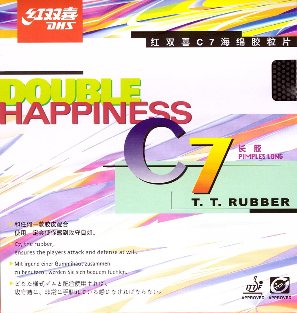 A DHS C7 é uma borracha de pinos longos que combina controle, leveza e versatilidade, sendo ideal para jogadores defensivos que exploram disrupções e estratégias táticas. Com uma esponja macia e uma estrutura de pinos projetada para precisão, ela oferece uma experiência de jogo única, perfeita para alternar entre defesa sólida e ataques sutis. 🏓✨