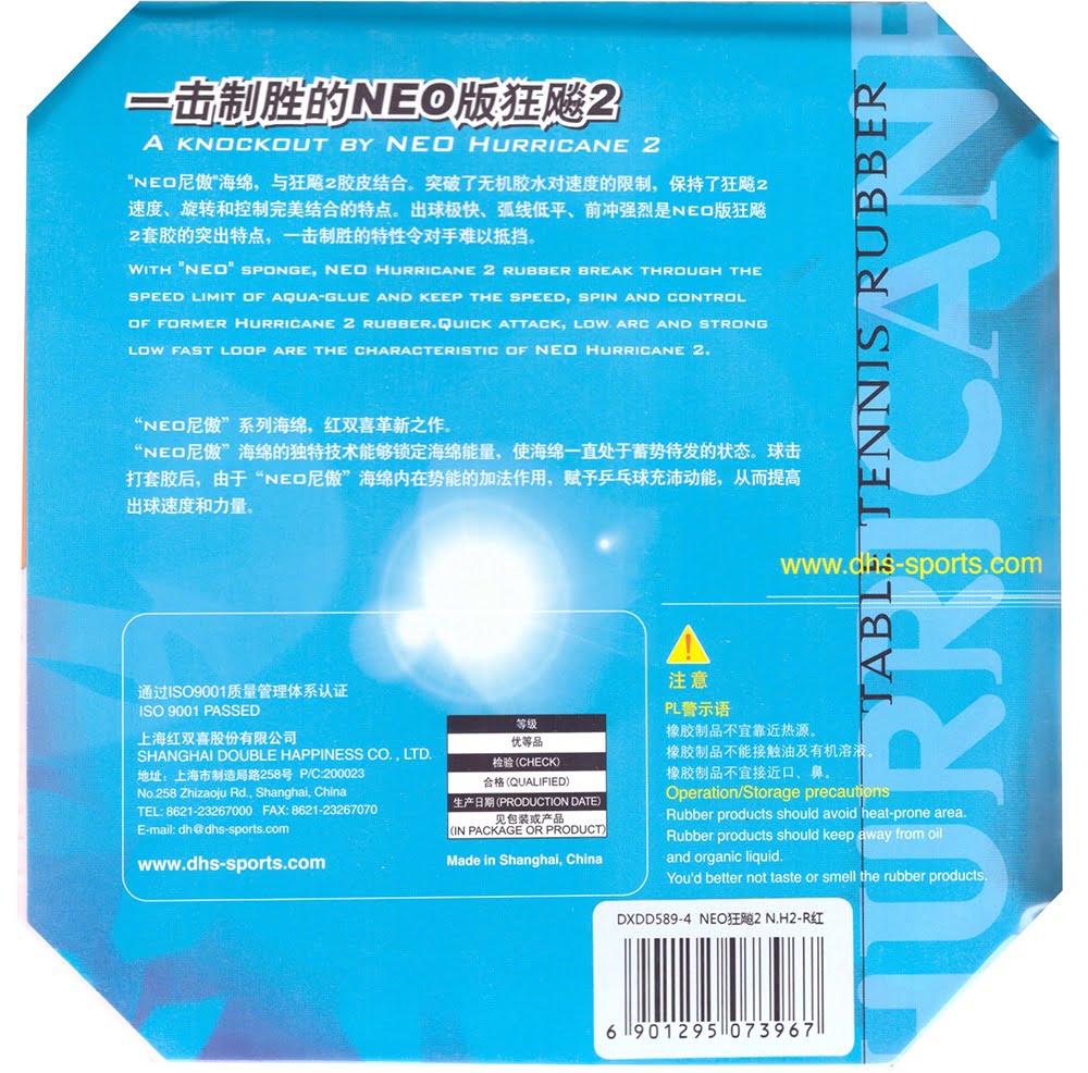 A DHS Hurricane 2 Neo é uma borracha inovadora que combina a superfície clássica aderente da Hurricane 2 com a nova esponja Neo, oferecendo mais elasticidade e energia. Ideal para jogadores ofensivos que desejam dominar o jogo com spin e controle de alto nível. 🏓✨