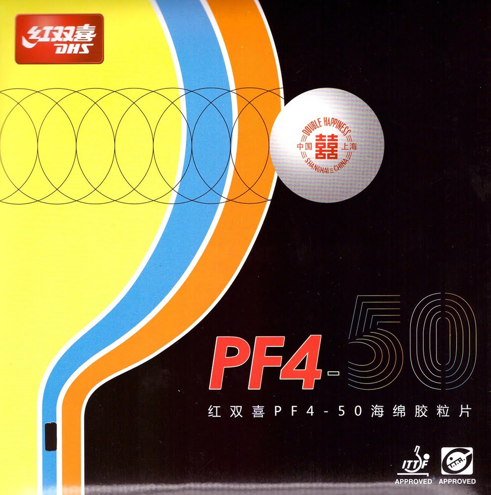 Uma versão mais leve da clássica borracha PF4. A borracha PF-4-50 é equipada com uma esponja leve e elástica, o que o torna atraente para aqueles jogadores que gostariam de experimentar uma borracha pegajosa chinesa, mas não se sentem confortáveis com uma esponja muito dura.