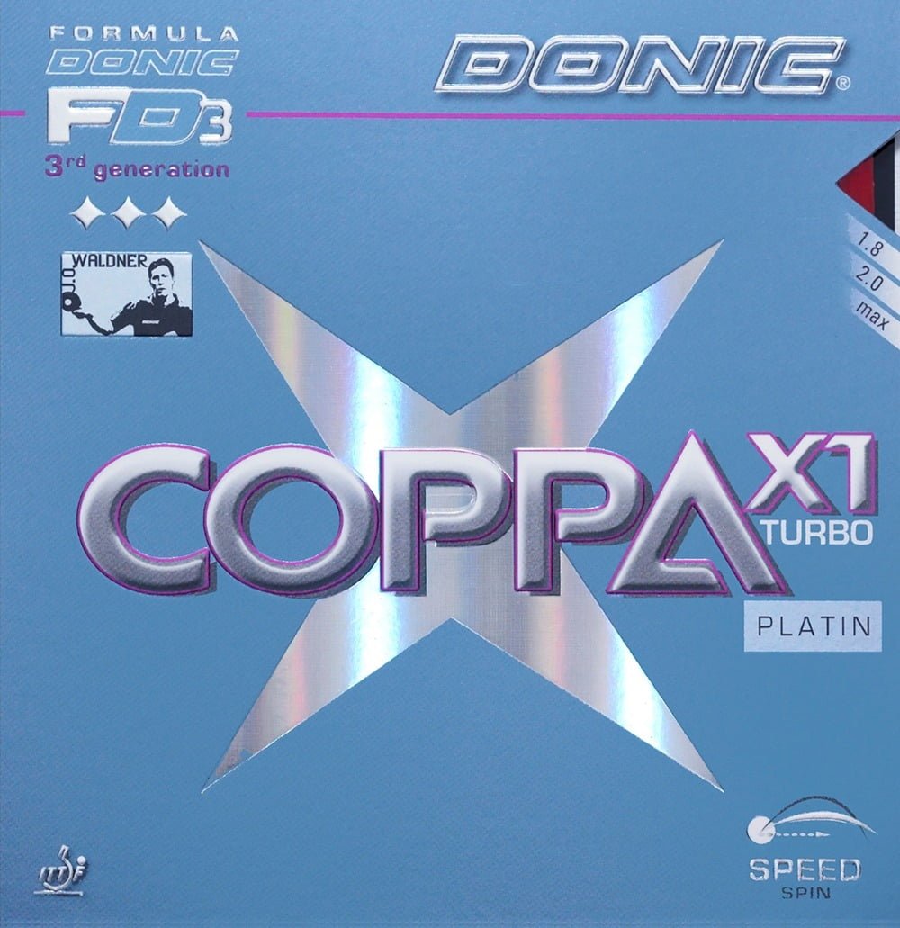 Em comparação com seus antecessores, a nova série COPPA produzirá mais giro e um arco mais alto em velocidade máxima. COPPA X1 Turbo é especialmente adequado para topspin longe da mesa. Em comum com todas as novas borrachas da série FD3 COPPA X1 Turbo garantirá que seu jogo seja mais preciso e menos propenso a erros. Caráter básico: borracha spinny otimizada pela velocidade e alta precisão. Estilo do jogador: ofensivo, giro rápido, jogo de meia distância.