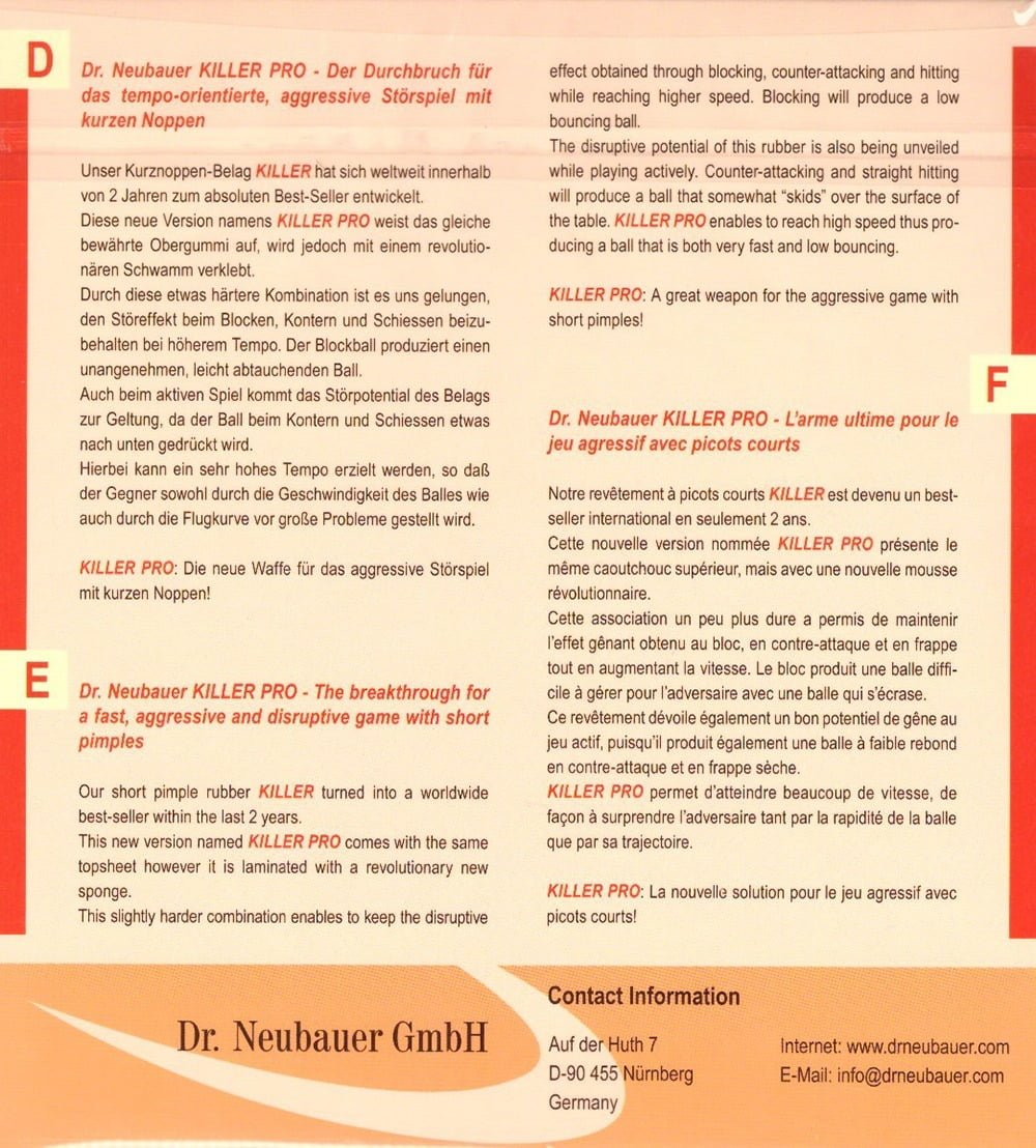 Killer Pro vem com a mesma planilha que Killer. É laminado, no entanto, com uma nova esponja revolucionária.