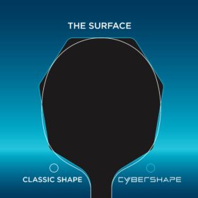Medições realizadas em colaboração com a KTH demonstram que a Cybershape possui uma área de impacto maior, posicionada mais acima na lâmina em comparação com formatos padrão. Isso resulta em golpes mais potentes sem comprometer o controle da bola, proporcionando vantagens significativas durante o jogo.