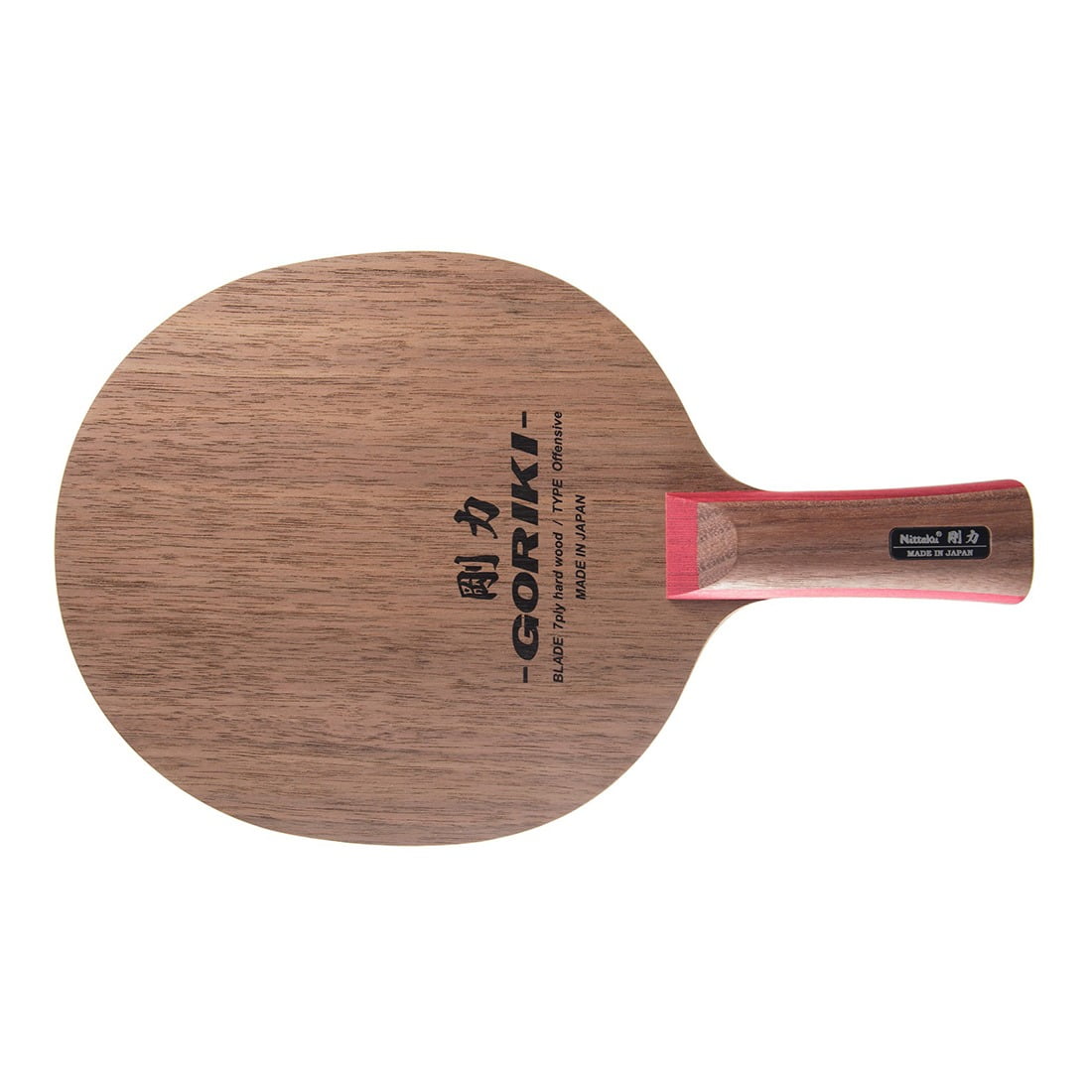 “O Nittaku Goriki é uma edição especial da lâmina japonesa com um design único. Esta lâmina exclusiva é bastante fina, tem um grande tamanho de cabeça, e um peso pesado tornando-o perfeito para jogadores de pips longos. Fabricado no Japão.
