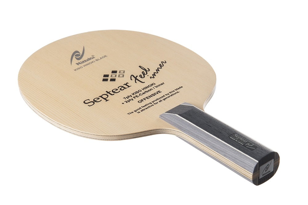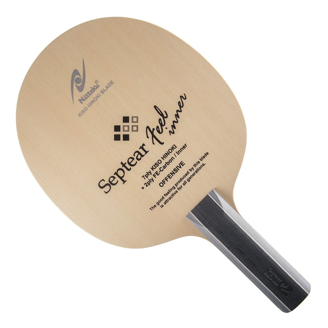 O Nittaku Septear é uma lâmina de 7 ply que combina 7 plies de madeira compensada Hinoki com uma camada interna de carbono FE. Esta lâmina atinge um bom equilíbrio entre velocidade e sensação. Com Kiso Hinoki oferece elasticidade e sensação únicas.